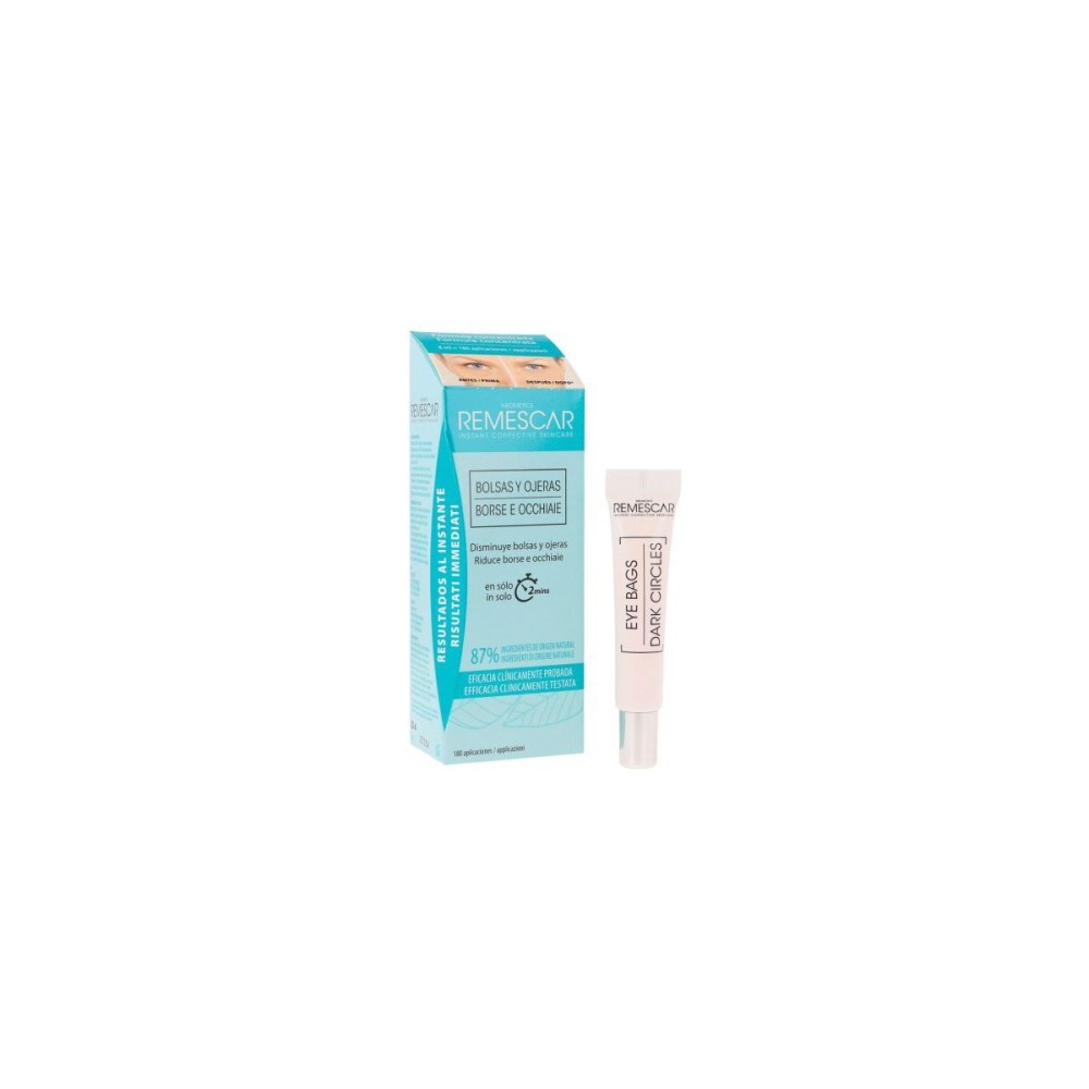 Este Contorno de ojos especial para bolsas y ojeras de la marca Remescar, actúa disminuyendo los signos de la mirada cansado desde la primera aplicación y en tan solo 2 minutos. Su fómula es suave y está especialmente diseñado para la delicada zona de los ojos, contiene una combinación de minerales arcillosos con cristales biomédicos, que actúan rellenando las arrugas en profundidad, reforzando la firmeza de la piel y reduciendo visiblemente las bolsas y ojeras.